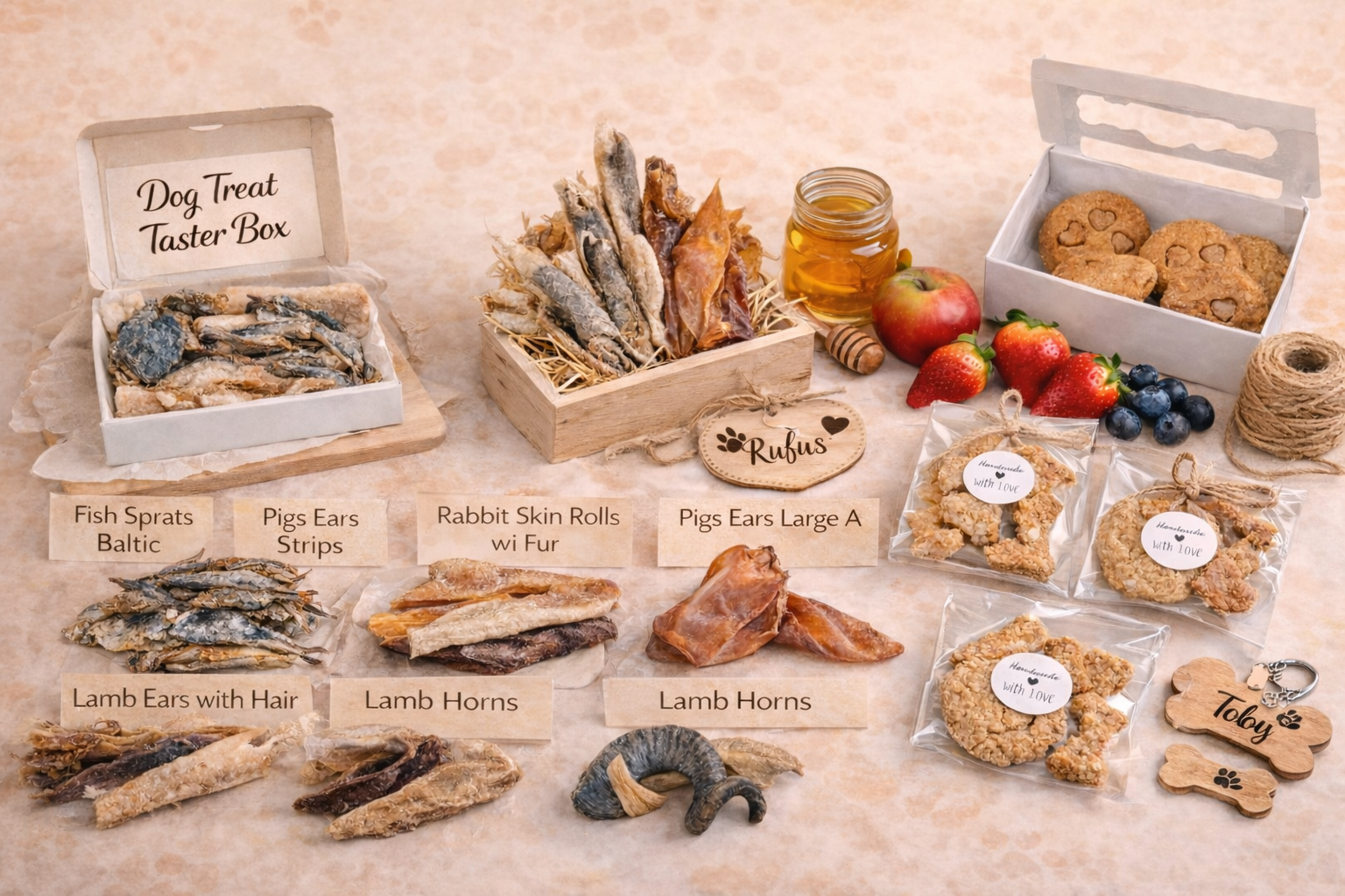 We offer a unique selection of bespoke gifts and natural treats, all crafted with love and care for your canine companions. Our mission is to provide products that are both wholesome and unique.
